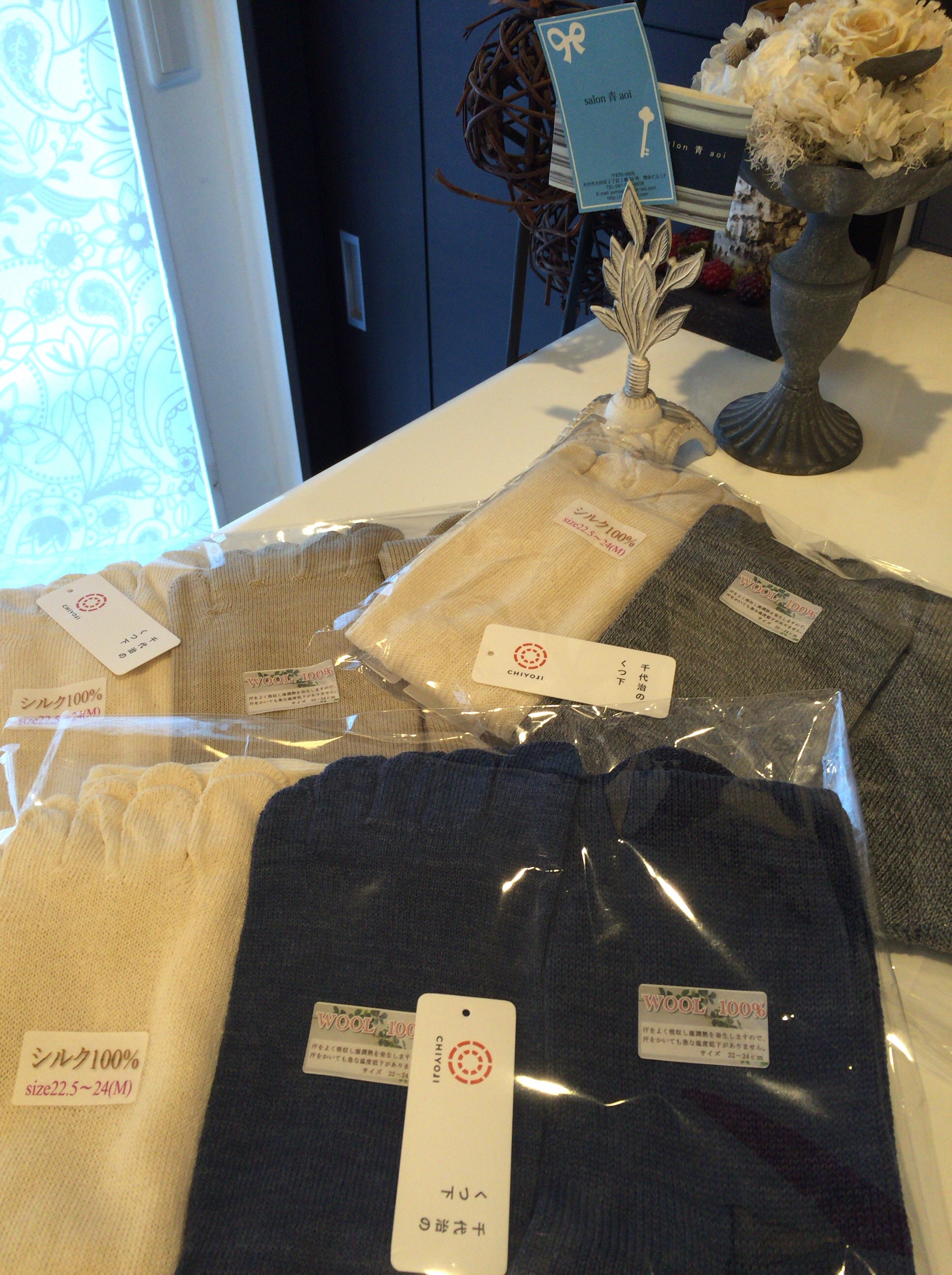 冷え取り靴下 ようこそaoiへ。 台風が接近中ですね。 何事もありませんように・・・。 さて 先日入荷した「千代治」さんの靴下は ちょっと厚手で 足首がすご~く温かいです( *´艸`) 4枚重ねですが、期待以上の温かさですよ。 って、 まだ暑いかな~?笑 私は1年中冷え取り靴下です(‘ω’)ノ