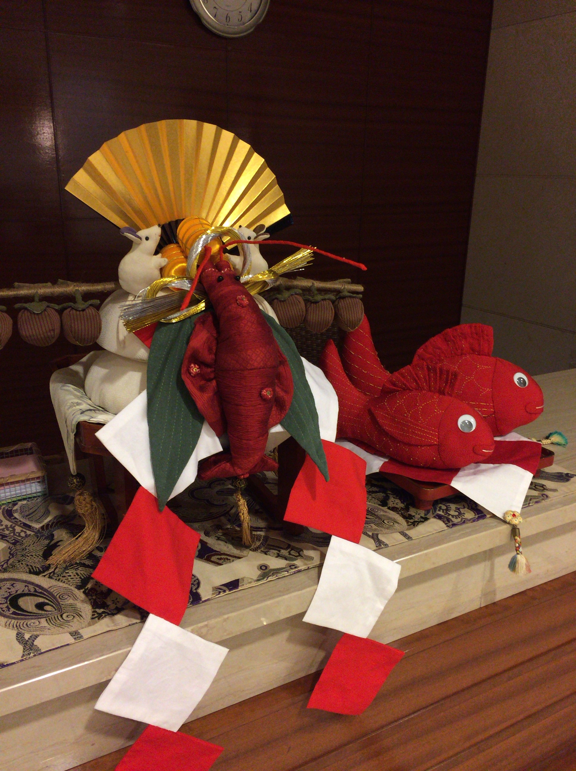 布で作った手作りの鏡餅や鯛が飾られていました( *´艸`)