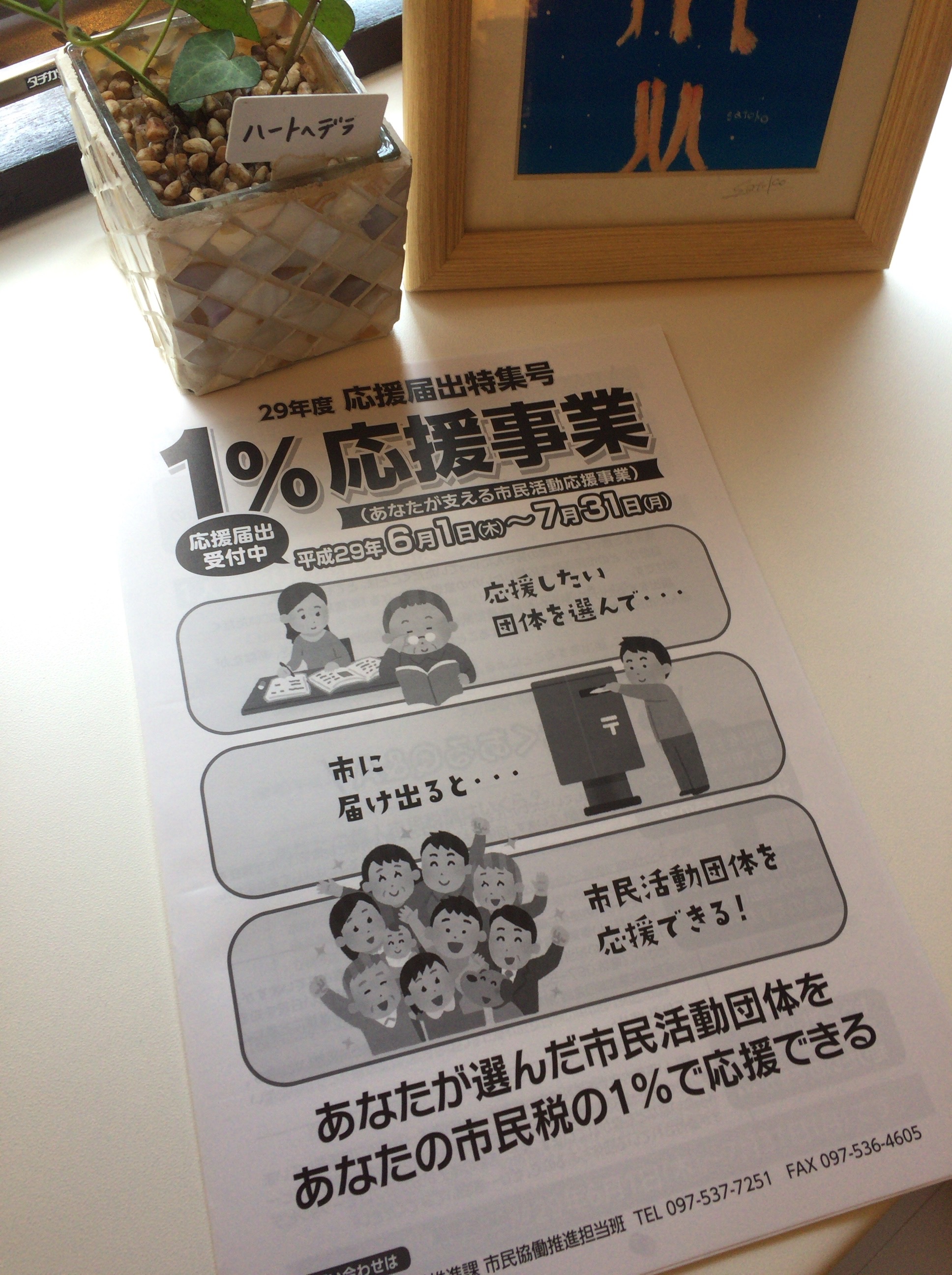 今回1%応援事業のご案内をお預かりしています。