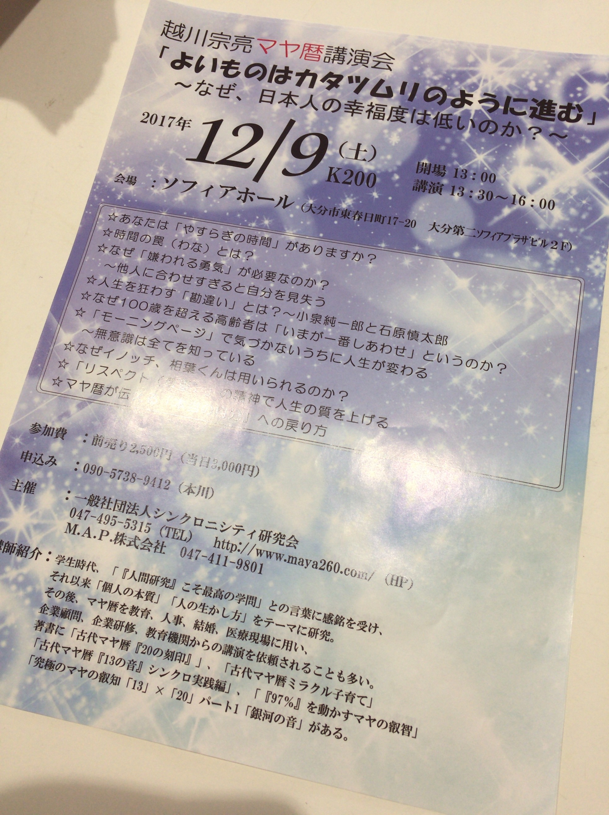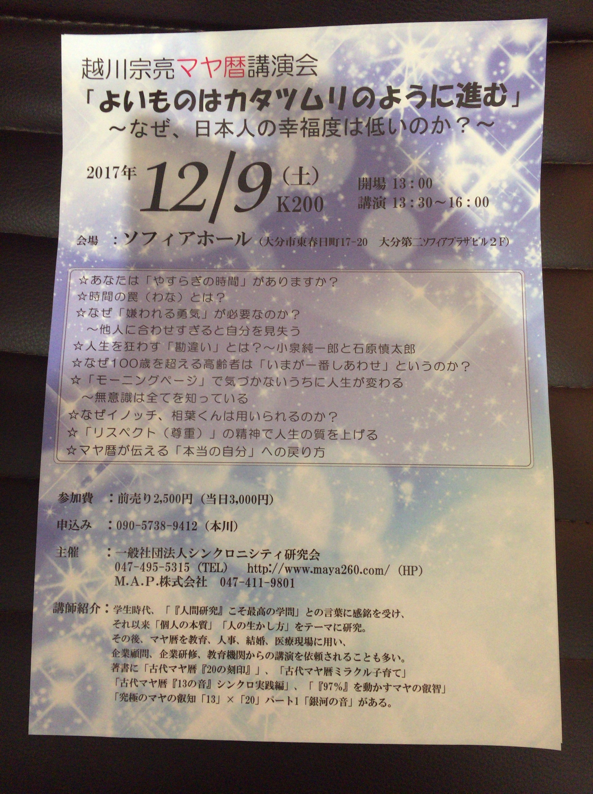 12月9日(土)マヤ歴講演会のご案内です。
