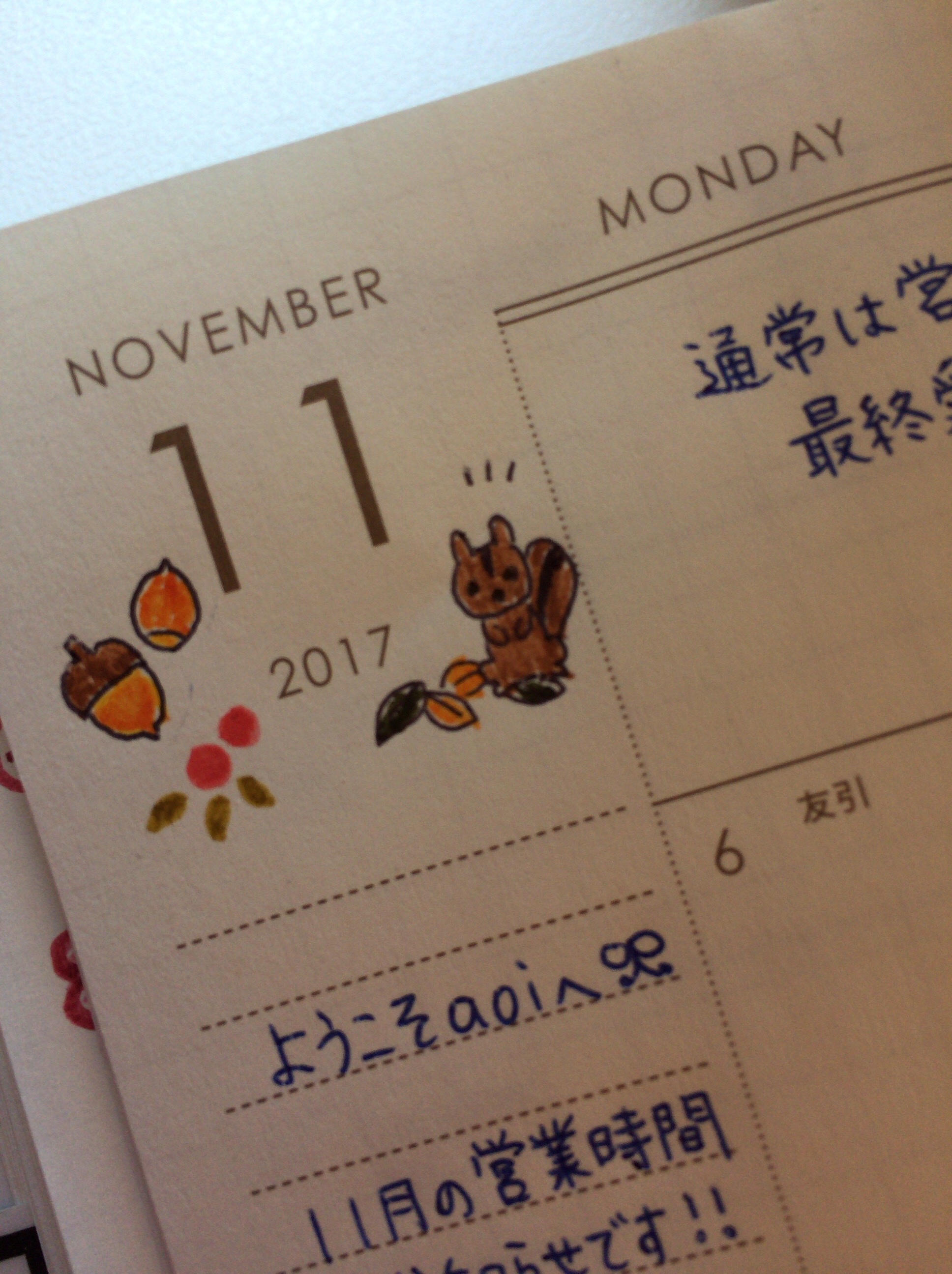 11月の営業時間のご案内を