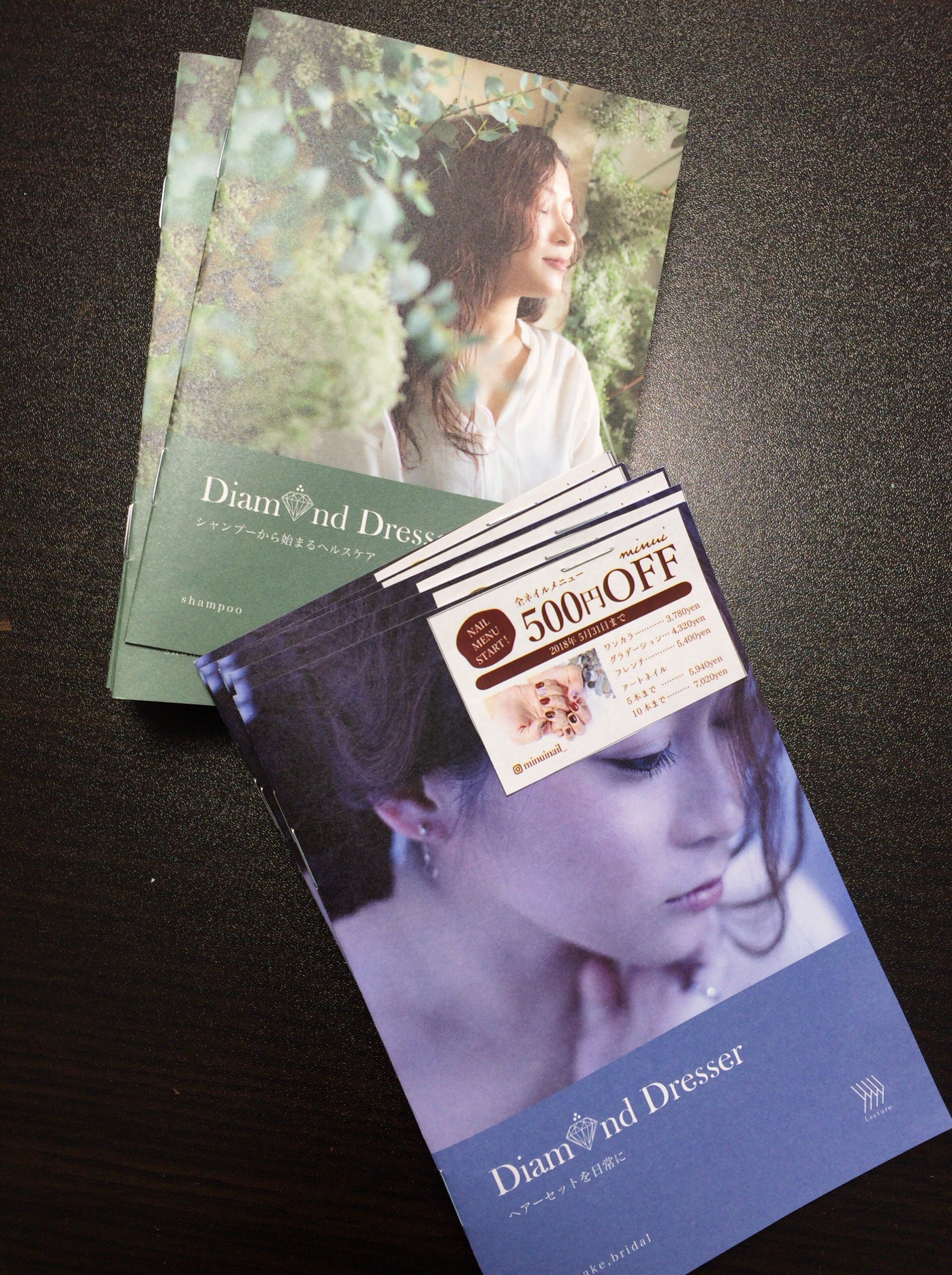 ネイルやヘアアレンジのフライヤーもお預かりしています。