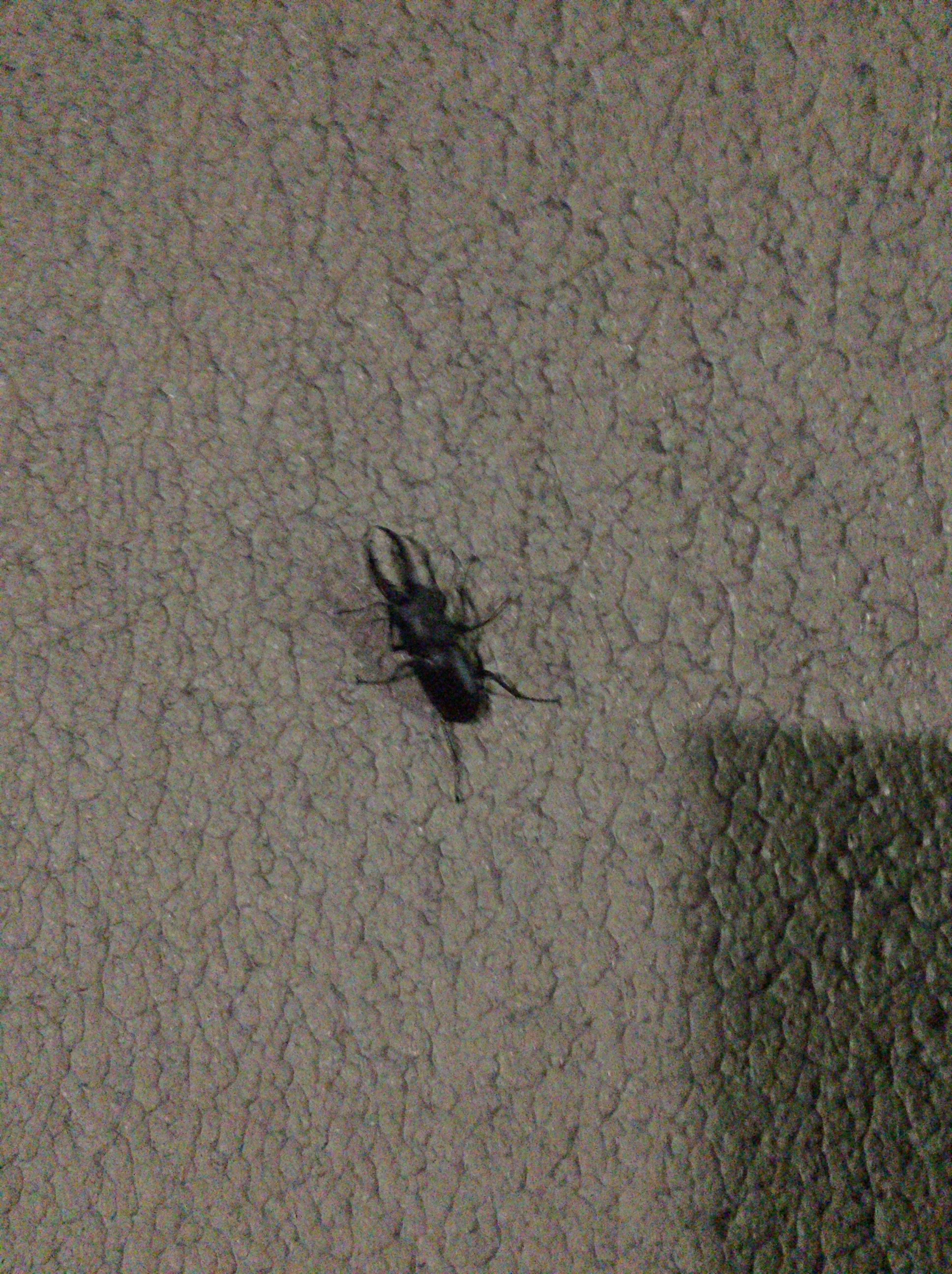 サロンの隣の家の壁にとまっていたクワガタ。