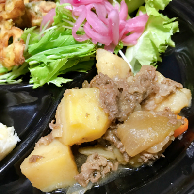 手作りの肉じゃがやおにぎりを頂きました。