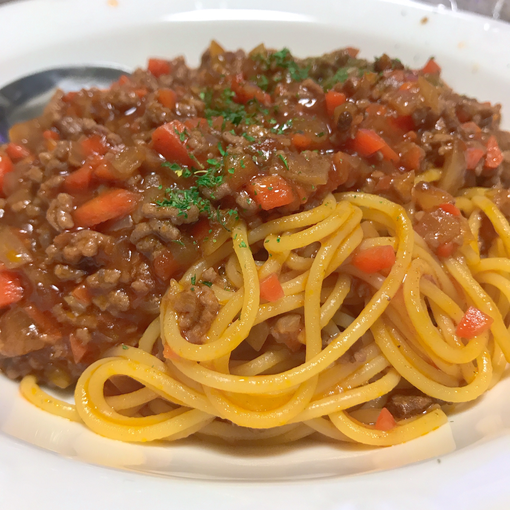 先日作ったミートソーススパゲティ。
