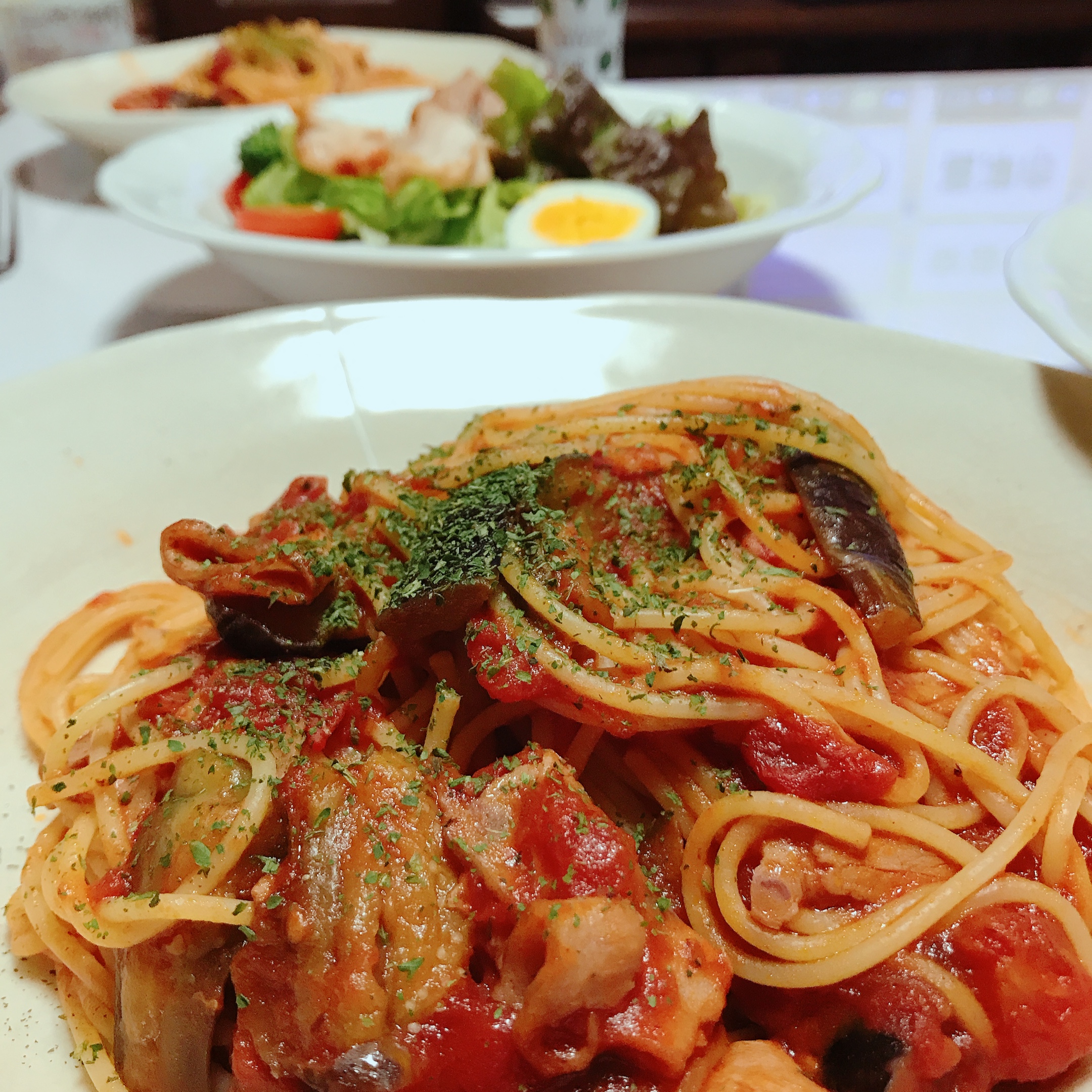 茄子とトマトのパスタなんてどうでしょう。