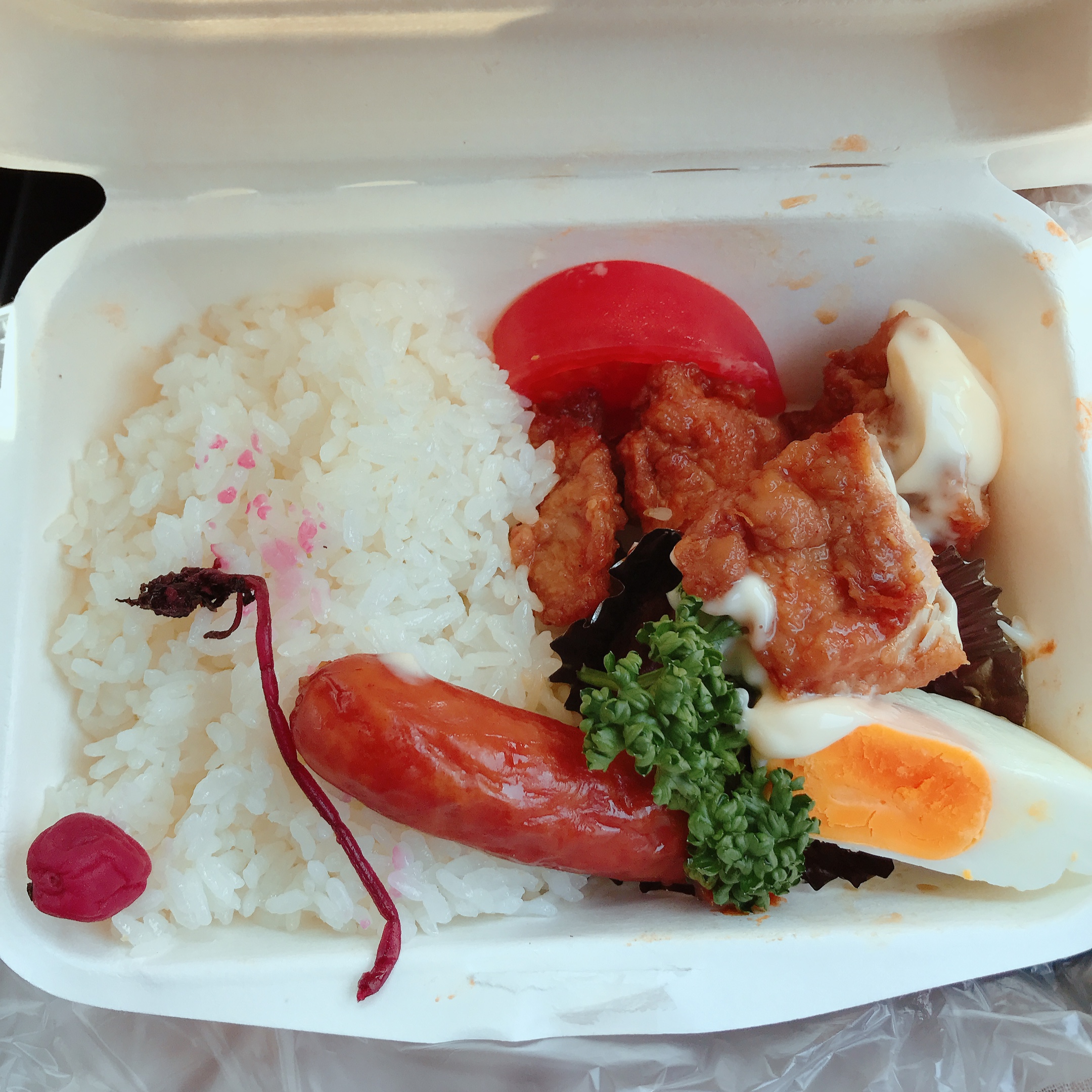 車中でお弁当。