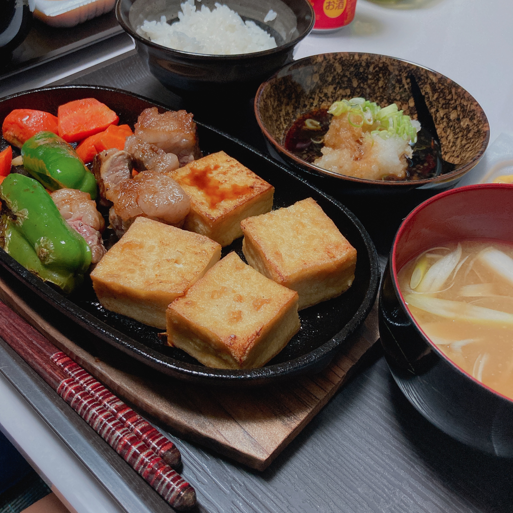 お野菜や豆腐やお肉をのっけて