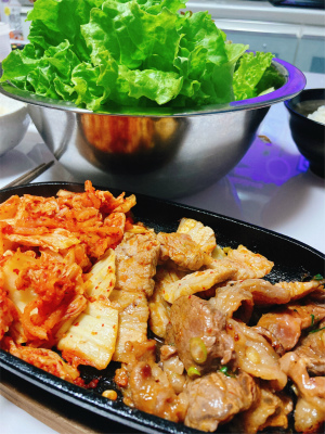 韓国キムチを鉄板で焼いて