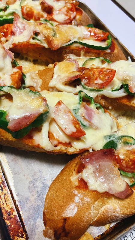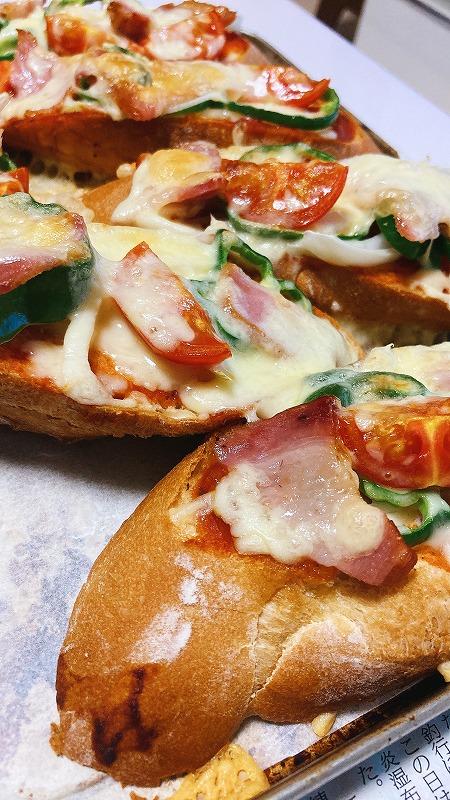 フランスパンでピザを焼きました。