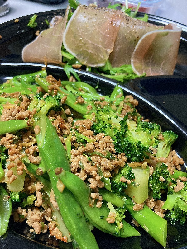 を炒めてミンチを加えた野菜炒め。
