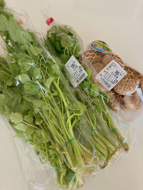 セリと原木しいたけ。