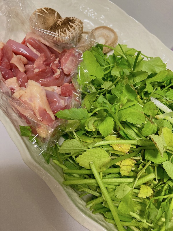 セリと原木しいたけは