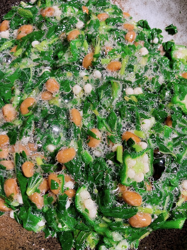 オクラと納豆と合わせて味付けしまして