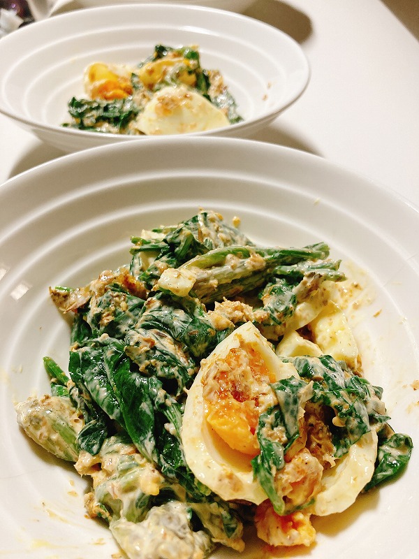ほうれん草と茹で卵びっくり