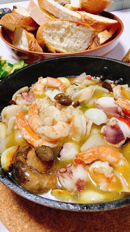 初めてのシーフードアヒージョと