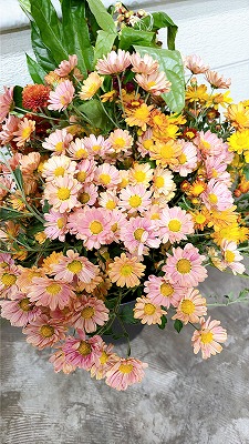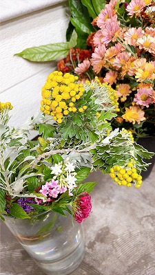 寒い中、庭で育てた花を摘んで届けてくれます