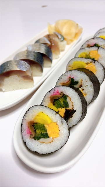 全部手作りの巻き寿司とバッテラ